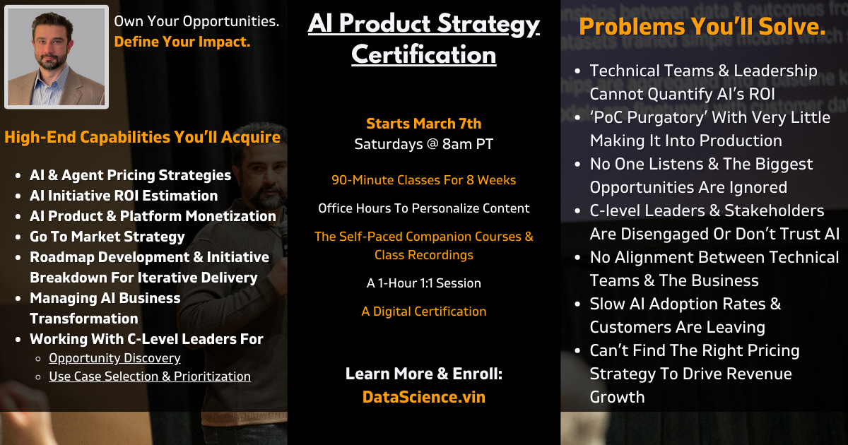 Every company with a business model that relies on technology (which is now almost every company on Earth) must come to terms with the AI Monetization Pyramid. It’s one of the newest parts of my instructor-led AI Product Strategy Certification course.